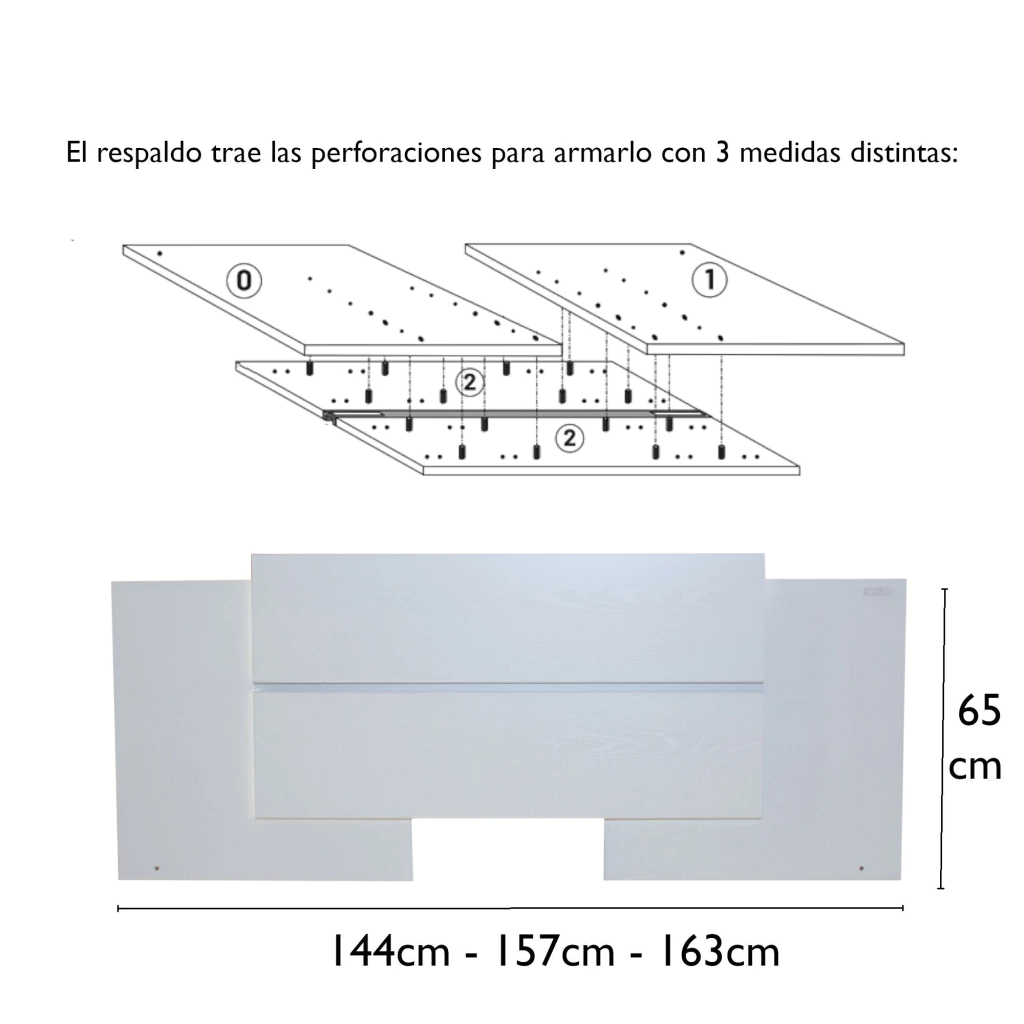 - El respaldo viene preparado para armar en cualquiera de las tres medidas