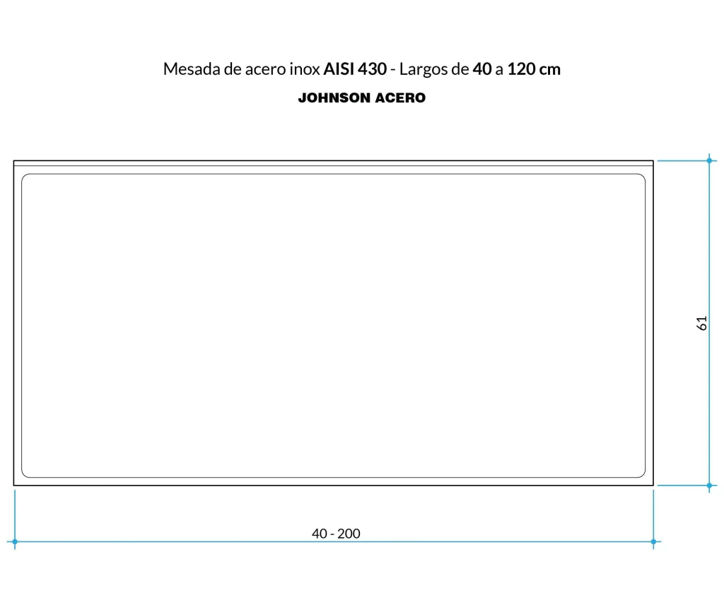 MESADA ACERO INOXIDABLE 140x60 SIN BACHA JOHNSON ACEROS